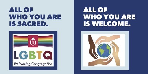 Each of us has worth and dignity. As Unitarian Universalists, we welcome persons of all sexual orientation, gender and its expression, religious background, marital status, family structure, age, mental and physical health and ability, racial and cultural identity or background, and educational and socioeconomic status. We value diversity and see it as a spiritual gift. All may share in the fellowship and leadership, blessings and joys of our congregation's life.